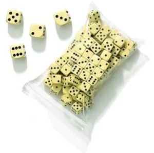 In zak van 100 dobbelstenen.
