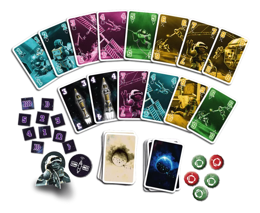 In het de De Crew kaartspel zijn er 50 opdrachten die de spelers als astronauten moeten volbrengen. De eerste opdrachten zijn vrij eenvoudig (zorg dat Jan de rode 3 in een slag pakt en Sara de groene 3). Al snel worden het veel meer kaarten die door spelers moeten zien te halen en vaak ook nog op een bepaalde volgorde. De speler moeten reken, tellen, beetje gokken en een klein beetje geluk aan hun kant hebben.