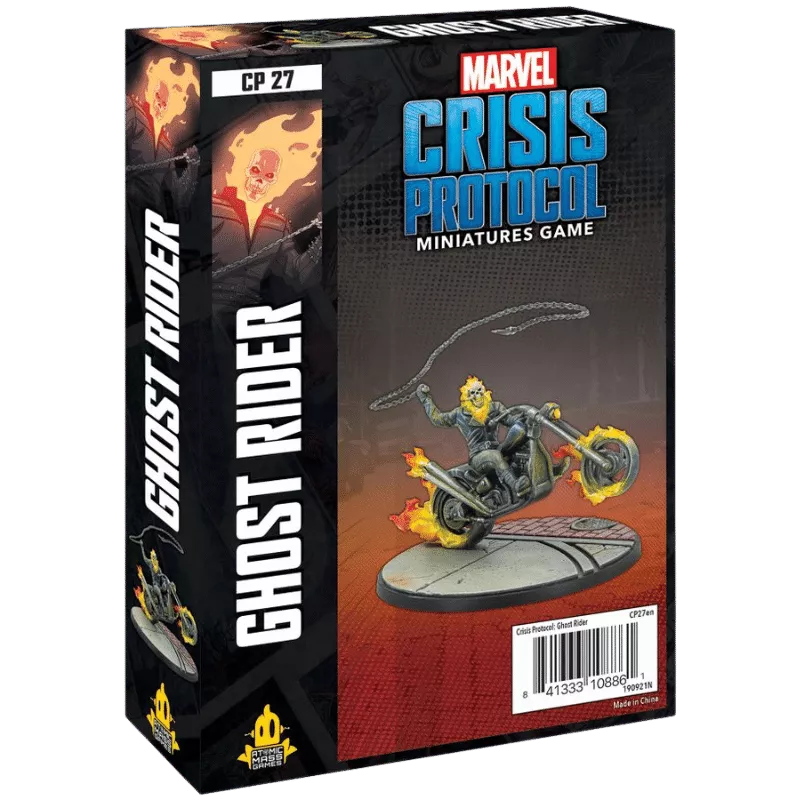 Expansieset voor miniaturenspel Marvel Crisis Protocol, waarmee je het karakter Ghost Rider aan je spel kunt toevoegen.