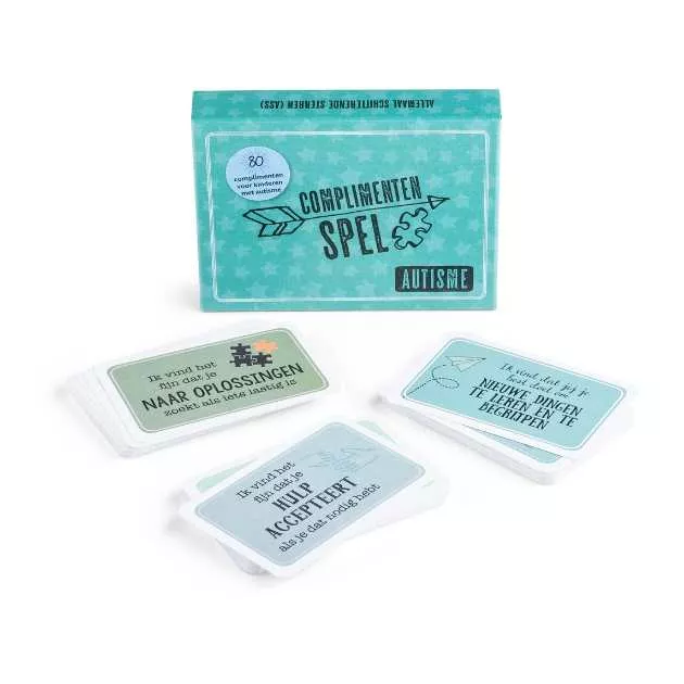 Kinderen met autisme hebben mooie eigenschappen en kwaliteiten welke benadrukt worden door deze complimenten. Het doel van dit spel is dat deze kinderen op een speelse en ontspannen manier voelen en ervaren dat zij helemaal goed zijn zoals zij zijn. In onze maatschappij ervaren veel kinderen met autisme extra uitdagingen. Dit spel bevat daarom tevens complimenten gericht op de inzet om vaardigheden te leren. Elk compliment is een positief teken van aandacht, erkenning en bevestiging. Op een simpele en effectieve manier zorg je ervoor dat een kind zich gezien en gewaardeerd voelt. Het Complimentenspel zorgt voor plezier, positiviteit en zelfvertrouwen. Een doosje vol liefde en positiviteit.