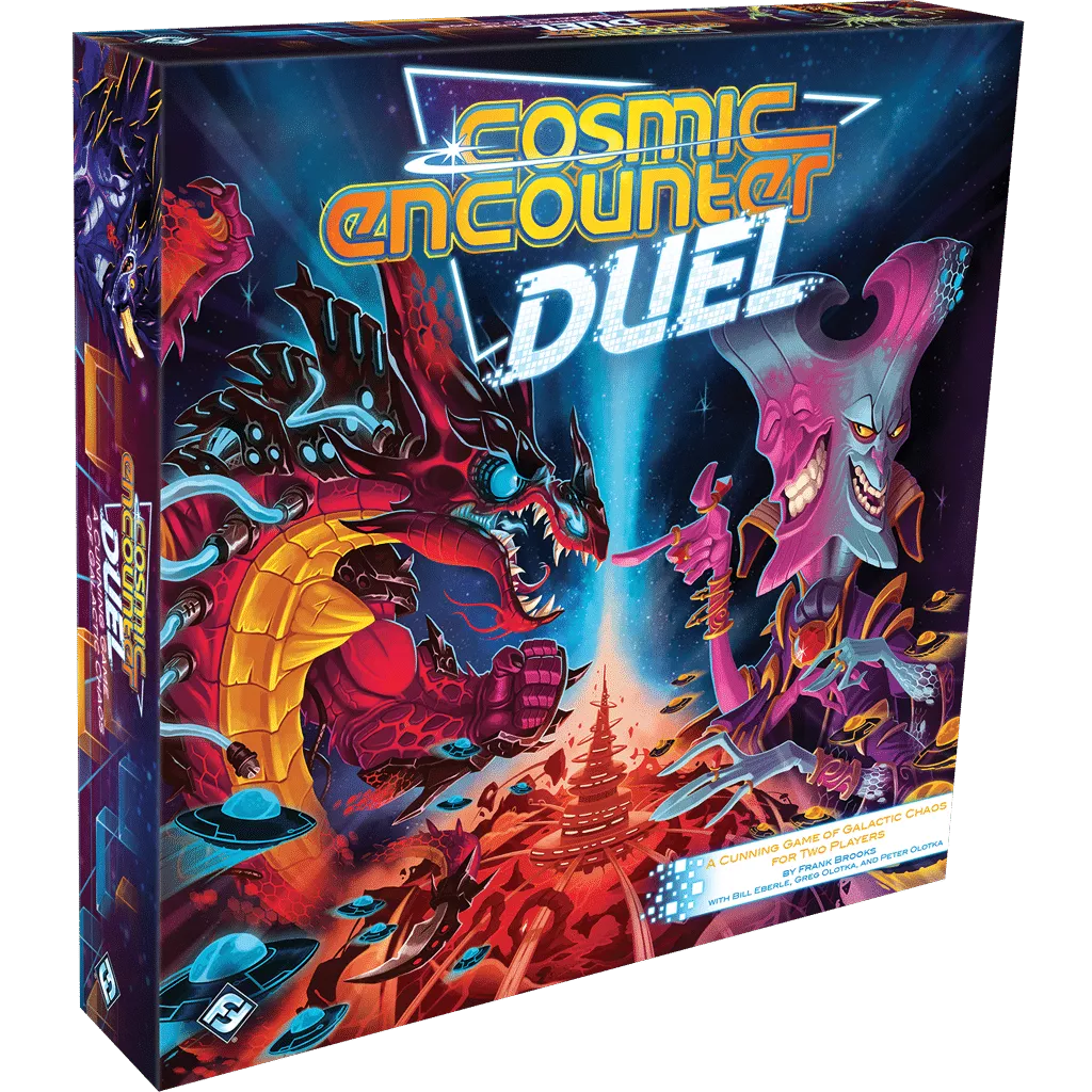 Cosmic Encounter Duel is a competitive standalone two-player game in the Cosmic Encounter universe in which you and your closest frenemy race to be the first to control five planets. Each of twenty-seven alien species comes equipped with its own unique abilities that play with the game mechanisms in some way, offering you an edge in the fight, e.g., the Cheater, who can reserve an additional tactic that they can put toward any fight in the game — as long as their opponent doesn’t call out how they’re trying to “cheat”. How your game of Cosmic Encounter Duel plays out will inevitably be affected by which powers each dueling species has and how they play off of one another.
