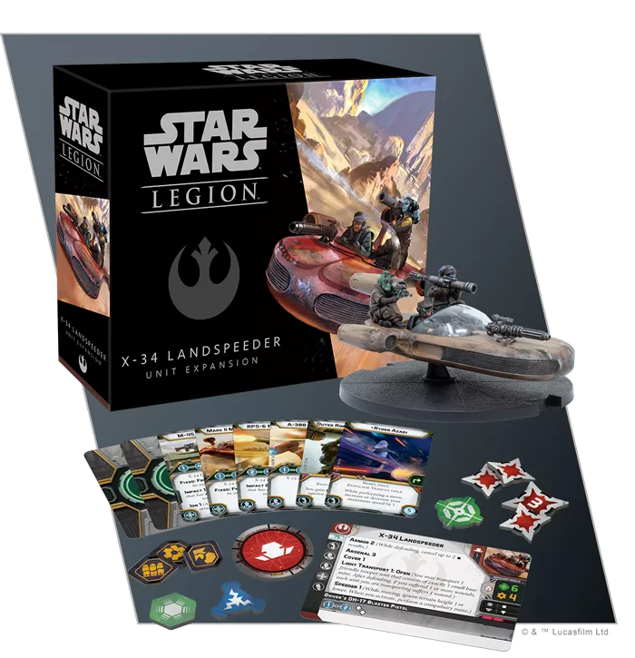 - Race into battle with the single highly detailed X-34 Landspeeder miniature included in this expanison pack! You can customize both the weapons and the crew on this landspeeder miniature, swapping in an M-45 ion blaster or a Mark II medium blaster, and bringing in crew armed with rifles or rocket launchers.