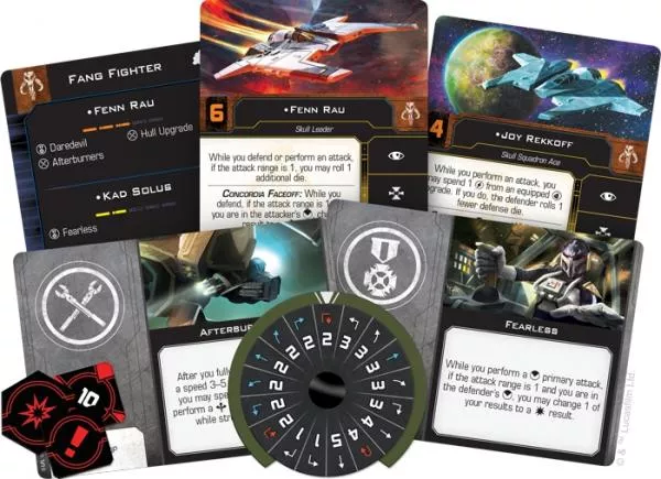 The Fang Fighter Expansion Pack includes a fully pre-painted Fang Fighter miniature, a maneuver dial, and all the ship cards, upgrade cards, and tokens you need to add one of these deadly starfighters to your squadron. In addition, the Fang Fighter Expansion Pack contains a few entirely new cards that have never before appeared in the game’s first edition. These new cards and associated punchboard are included in the Scum and Villainy Conversion Kit for the benefit of veteran players!