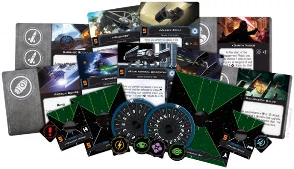 This kit contains all the components you need to upgrade your Imperial ship collection from the first edition to the second edition, including ship cards, upgrade cards, ship tokens, and maneuver dials. With the conversion kit, veteran and new players alike will be able to choose from a variety of Imperial pilots for each ship, then outfit those ships by selecting from more than one-hundred upgrade cards. All ships and upgrade cards contained in the Galactic Empire Conversion Kit will be supported by the X-Wing Second Edition squad-builder app at launch, giving you a deep pool of options for customizing each ship and squadron.