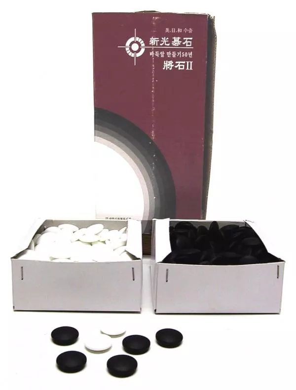 Go Stenen 22 mm bij 9 mm, de stenen zijn van glas en per kleur zitten er 180 stenen. De meeste borden zijn geschikt voor deze stenen maar meet het voor de zekerheid.