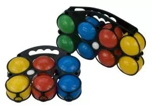 Deze Jeu de boules set komt met 8 Ballen van kunststof en zit in een zwarte kunststof houder, de ballen zijn gevuld met water. Ideaal voor op de camping maar als u van plan bent om in Zuid Frankrijk de strijd aan te binden met de lokale kampioen zou ik u toch een andere set adviseren.