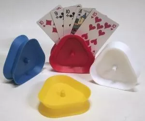 Kaarthouder houder van plastic driehoekmodel, de kaarten zijn erg makkelijk in deze houder te schuiven en er goed uit te halen. Ideaal voor mensen met wat moeilijke handen.