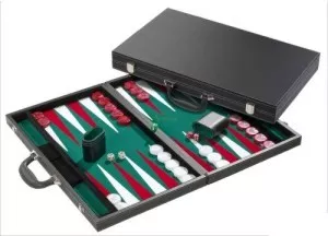 Als je deze grote backgammon Koffer op tafel legt dan ligt er ook echt wat. Hij is dus bedoeld voor de veel speler. De maten zijn 530 bij 320 bij 60 millimeter, als de koffer dicht is. De kleuren zijn traditioneel.Â