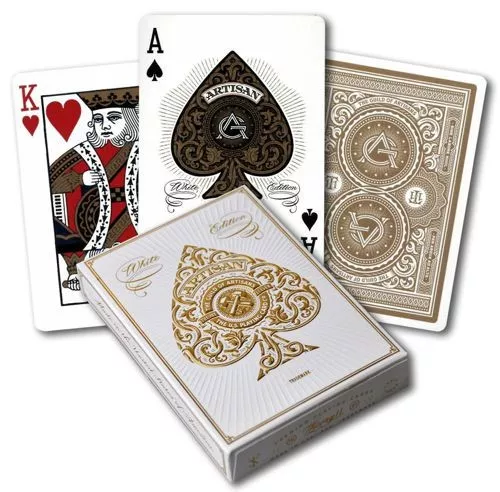 Pokerkaarten Artisan White Premium Bicycle. Afmeting 88 x 63 mm, internationale pop. Afgedrukt op premium papier met een hoogwaardige afwerking. Standaard 2 index. Bicycle USA