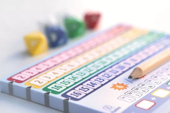 Iedereen heeft een eigen scoren block blad met daarop 4 kleuren sporen met getallen. Door goed te dobbelen en goed opletten welke dobbelstenen de andere spelers beschikbaar laten, probeer je zoveel mogelijk getallen af te kruisen.