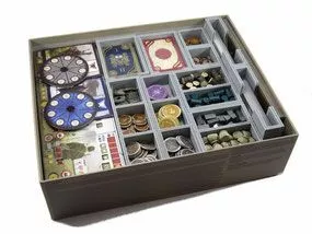 This Campaign 2 insert is designed to be compatible with Scythe®, and the Invaders from Afar® expansion.The design provides both efficient storage and improved game play. Many of the trays can be utilised during the game, and they greatly aid set-up and clear-away times. The rules act as a lid on top of the trays.