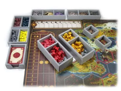 All the trays can all be used in game to help organise components during the game, as well as speeding up setup and clear away times.