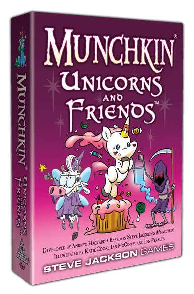Munchkin mini-expansion loaded with unicorns, cows, and the undead! We’re bringing even more wacky cards to Munchkin games everywhere. And this time around, to make things just a little more ridiculous, we’ve brought three of our favorite Munchkin artists together in a single set: Say hello to Munchkin Unicorns and Friends, illustrated by Katie Cook, Ian McGinty, and Len Peralta