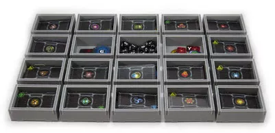 Note: insert designed for game with external box dimensions of 30 x 43.3 x 13.4 cm This Campaign 2 insert is designed to be compatible with Twilight Imperium 4th Edition©, and has space provided for future expansions. The design provides both efficient storage and improved game play. Many of the trays can be utilised during the game, and they greatly aid set-up and clear-away times. The rules and boards act as a lid on top of the trays. This product consists of a flat-pack of 12 Evacore sheets. The trays require assembly, which is quick and fun, using ordinary PVA glue. Detailed instructions are included in the package.